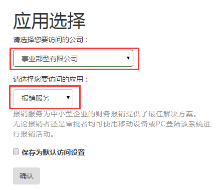 3. 登录后进入应用选择界面,选择公司和访问的应用,点击“确认”按钮