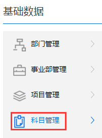 1. 点击基础数据页面中右边导航栏中的”科目管理”,进入科目管理界面